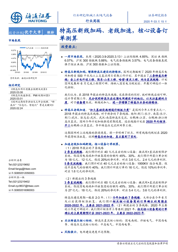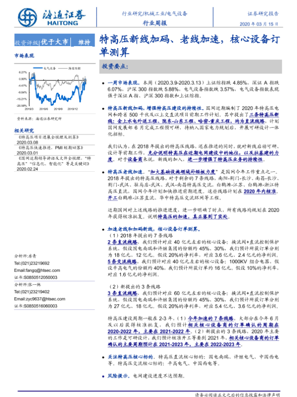 【海通证券】【20200315】海通证券-电气设备行业周报:特高压新线加码、老线加速,核心设备订单测算-3页
