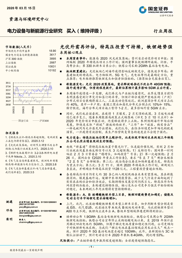 【国金证券】【20200315】20200315-国金证券-电力设备与新能源行业研究:光伏外需再评估,特高压投资可持续,铁锂趋势强-4页