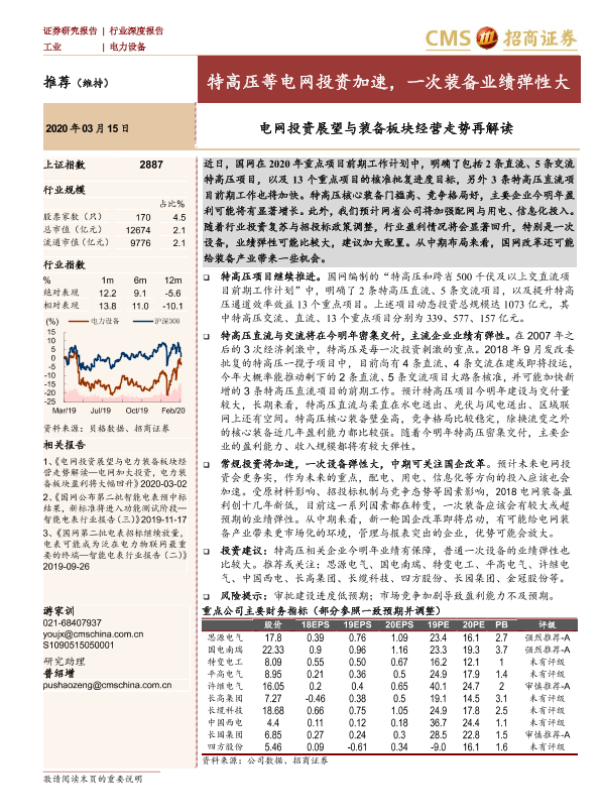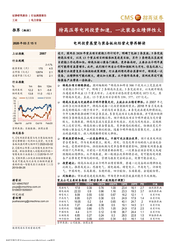 【海通证券】【20200315】电力设备:电网投资展望与装备板块经营走势再解读-特高压等电网投资加速,一次装备业绩弹性大-15页