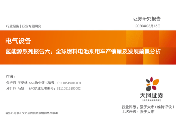 【天风证券】【20200315】氢能源系列报告六:全球燃料电池乘用车产销量及发展前景分析-26页
