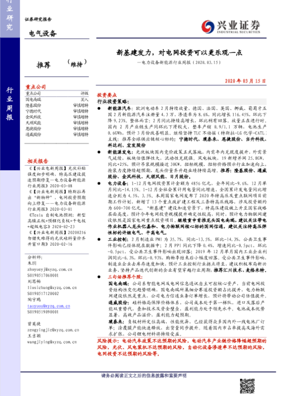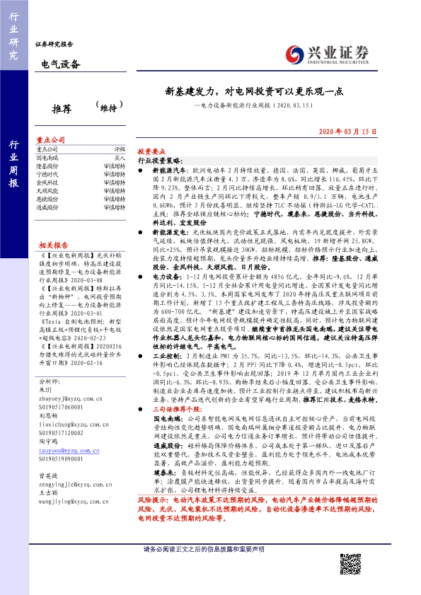 【兴业证券】【20200315】新基建发力,对电网投资可以更乐观一点—电力设备新能源行业周报(2020.03.15)-33页