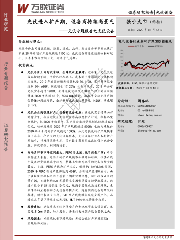 【万联证券】【20200316】光伏专题报告之光伏设备:光伏进入扩产期,设备商持续高景气-22页