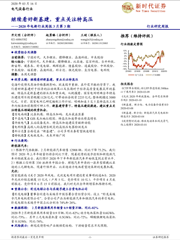 【新时代证券】【20200316】2020年电新行业周报3月第3期:继续看好新基建,重点关注特高压-13页