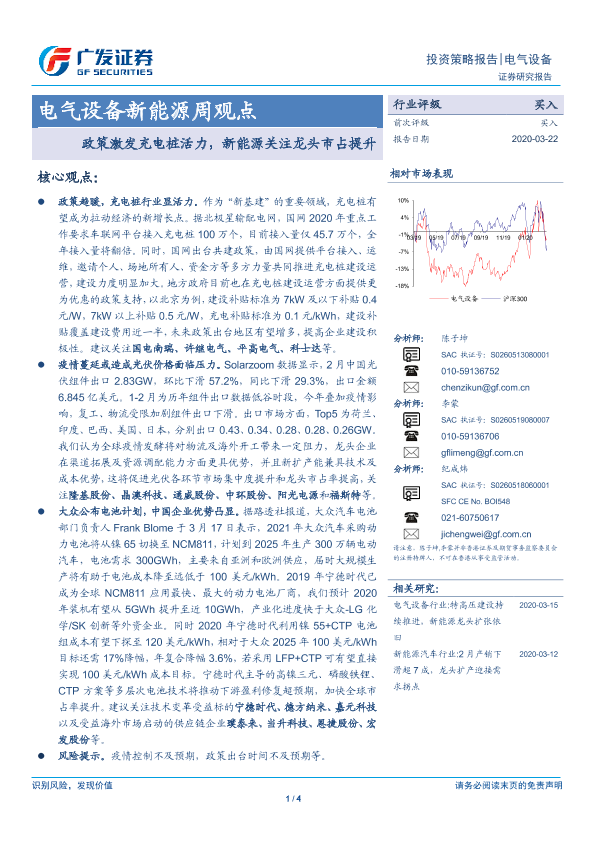 【广发证券】【20200322】电气设备新能源周观点:政策激发充电桩活力,新能源关注龙头市占提升-4页