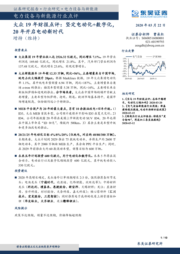 【东吴证券】【20200322】电力设备与新能源行业点评:大众19年财报点评:坚定电动化+数字化,20年开启电动新时代-10页