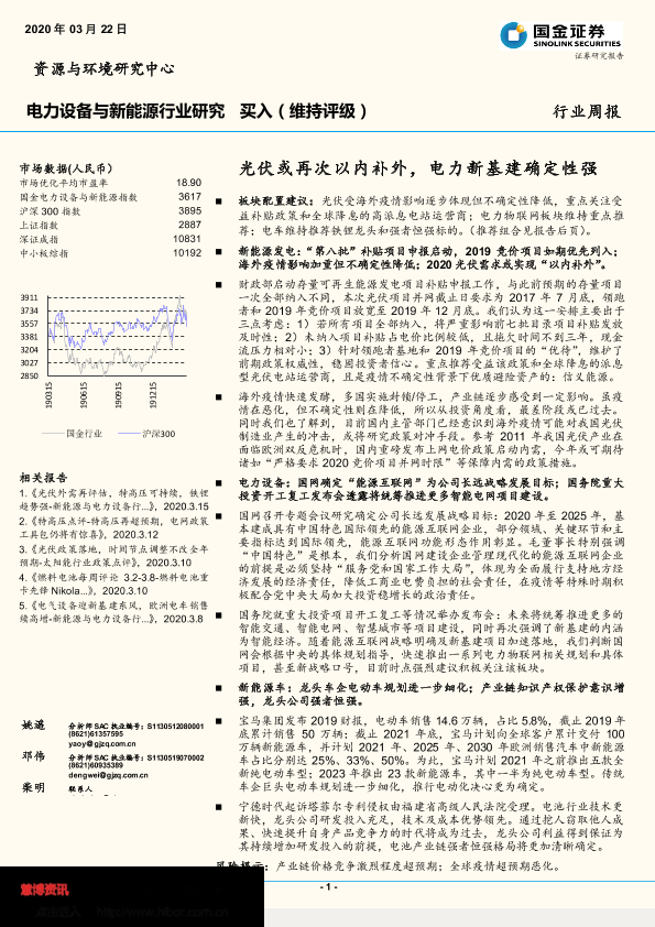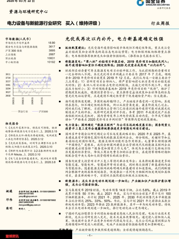 【国金证券】【20200322】电力设备与新能源行业研究周报:光伏或再次以内补外,电力新基建确定性强-4页