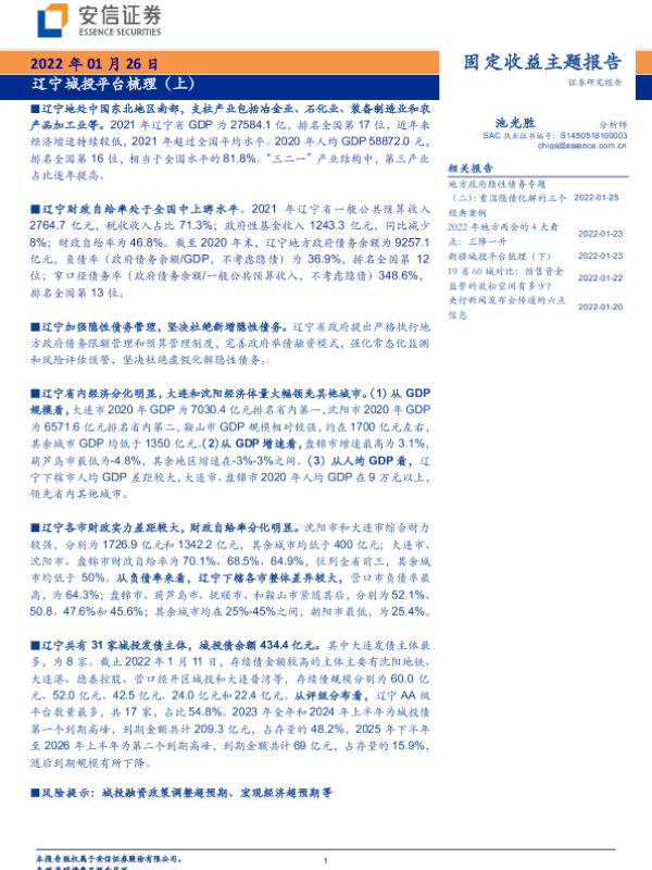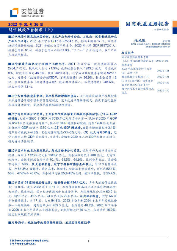【安信证券】【20220126】固定收益主题报告:辽宁城投平台梳理(上)-15页