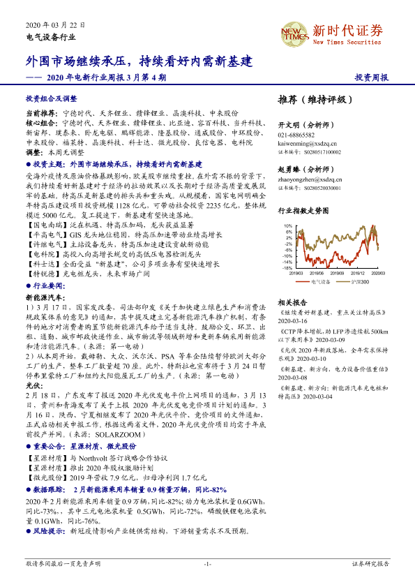 【新时代证券】【20200322】2020年电新行业周报3月第4期:外围市场继续承压,持续看好内需新基建-13页