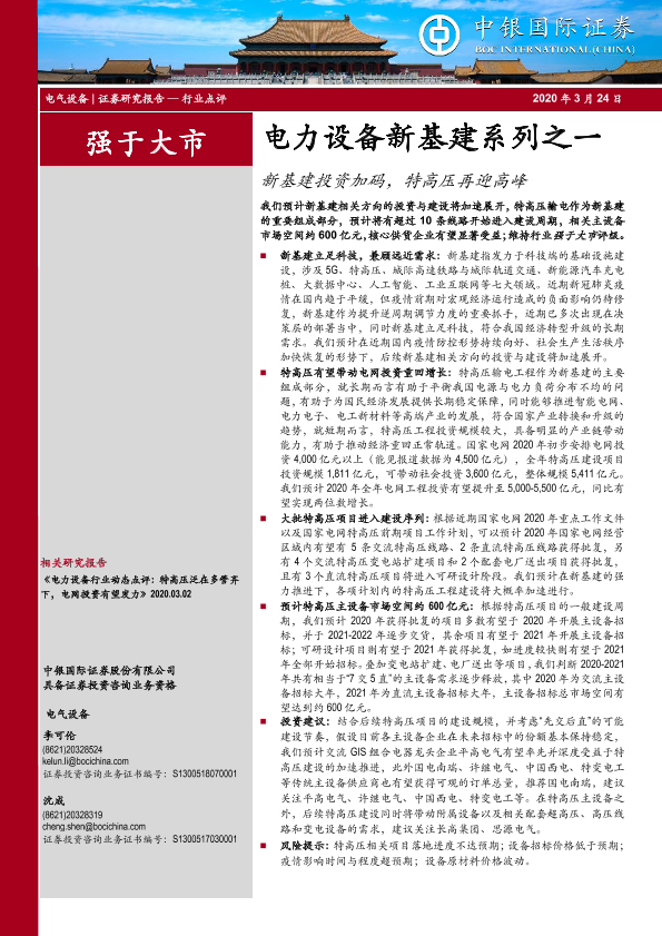 【中银证券】【20200324】电力设备新基建系列之一:新基建投资加码,特高压再迎高峰-10页
