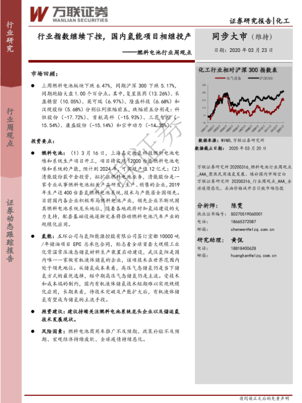 【万联证券】【20200323】20200323-万联证券-燃料电池行业周观点:行业指数继续下挫,国内氢能项目相继投产-7页