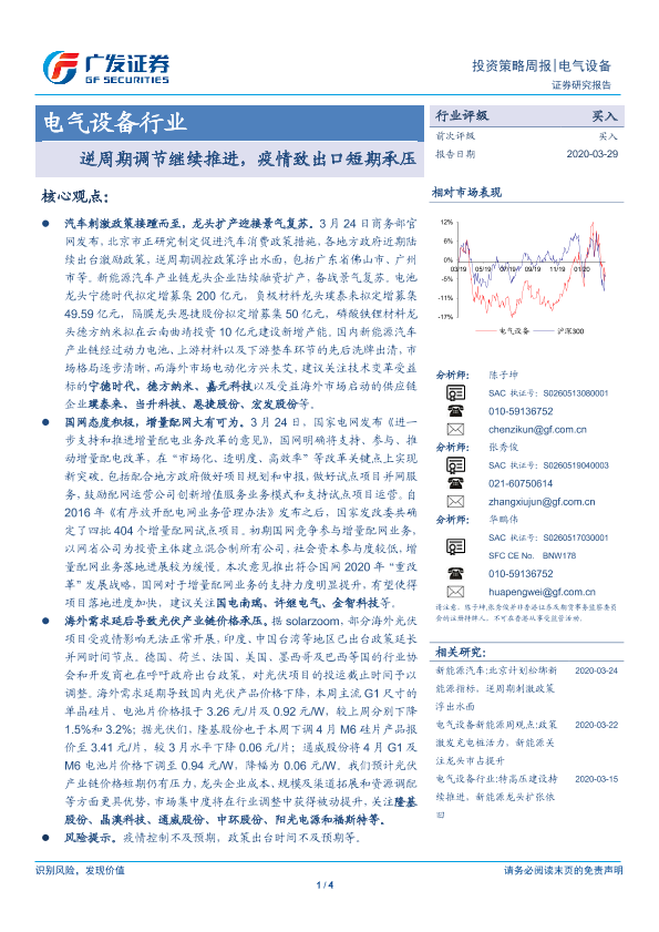 【广发证券】【20200329】20200329-广发证券-电气设备行业投资策略周报:逆周期调节继续推进,疫情致出口短期承压-4页