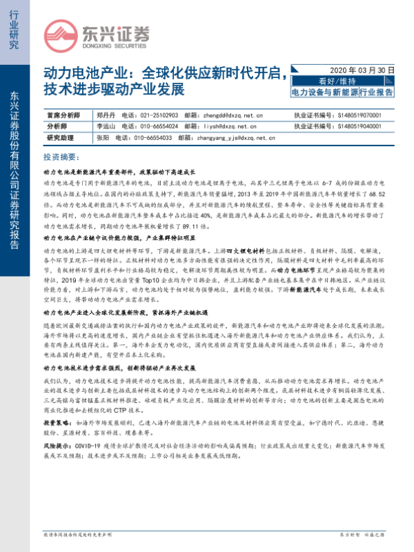 【东兴证券】【20200330】电力设备与新能源:动力电池产业:全球化供应新时代开启,技术进步驱动产业发展-26页