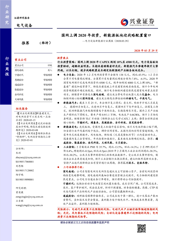 【兴业证券】【20200329】国网上调2020年投资,新能源板块迎战略配置窗口—电力设备新能源行业周报(2020.03.29)-30页