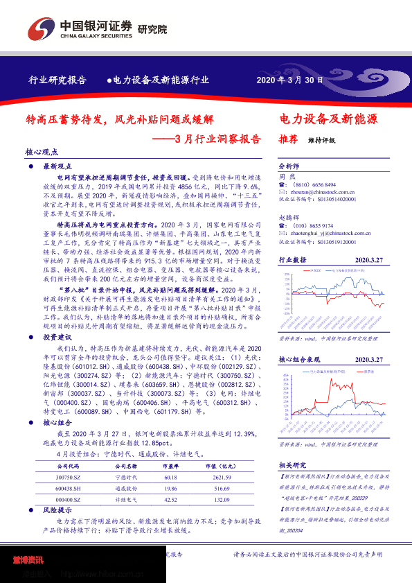 【银河证券】【20200330】电力设备及新能源行业3月行业洞察报告:特高压蓄势待发,风光补贴问题或缓解-41页