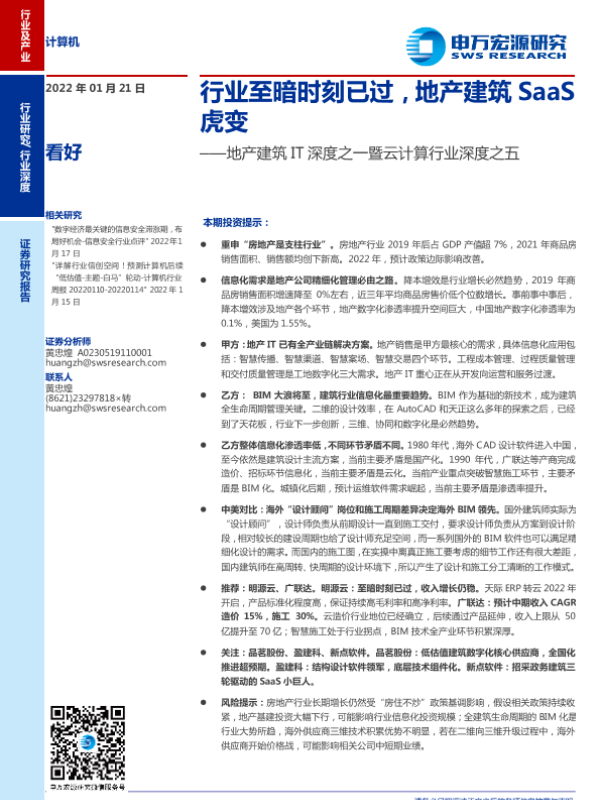 【申万宏源】【20220121】地产建筑IT深度之一暨云计算行业深度之五:行业至暗时刻已过,地产建筑SaaS虎变-25页