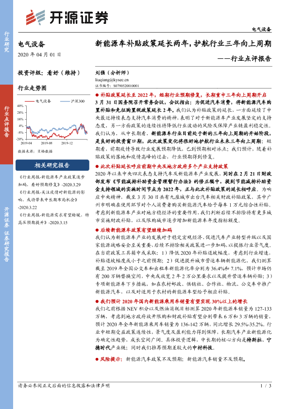 【开源证券】【20200401】20200401-开源证券-电气设备行业点评报告:新能源车补贴政策延长两年,护航行业三年向上周期-3页