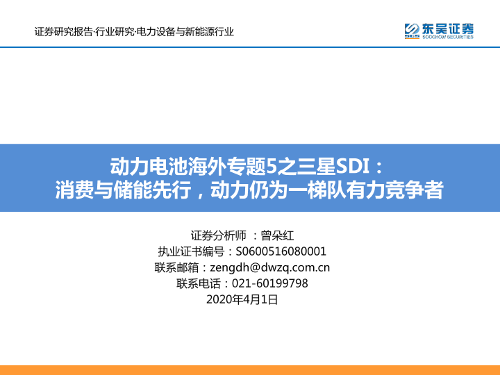 【东吴证券】【20200401】动力电池海外专题5之三星SDI:消费与储能先行,动力仍为一梯队有力竞争者-33页