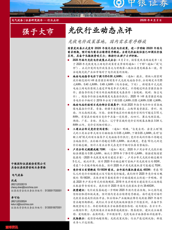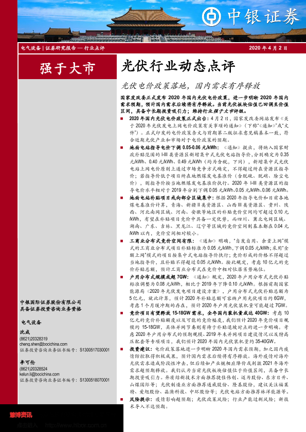 【中银证券】【20200402】光伏行业动态点评:光伏电价政策落地,国内需求有序释放-8页