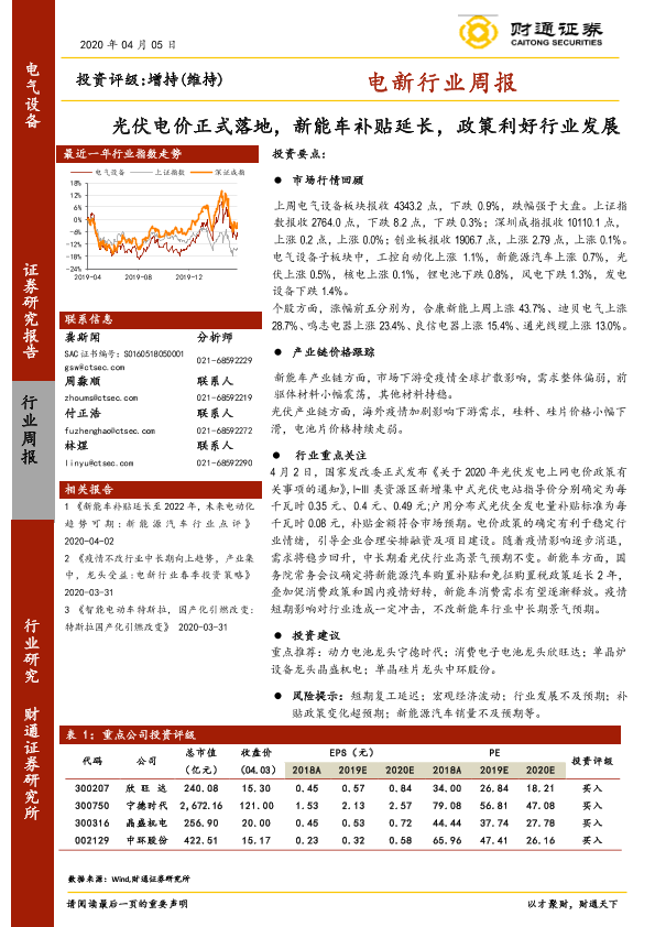 【财通证券】【20200405】20200405-财通证券-电新行业周报:光伏电价正式落地,新能车补贴延长,政策利好行业发展-11页
