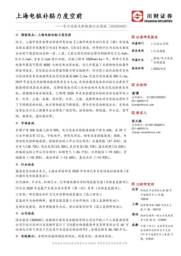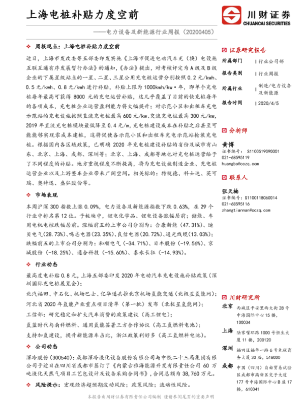 【川财证券】【20200405】电力设备及新能源行业周报:上海电桩补贴力度空前-15页