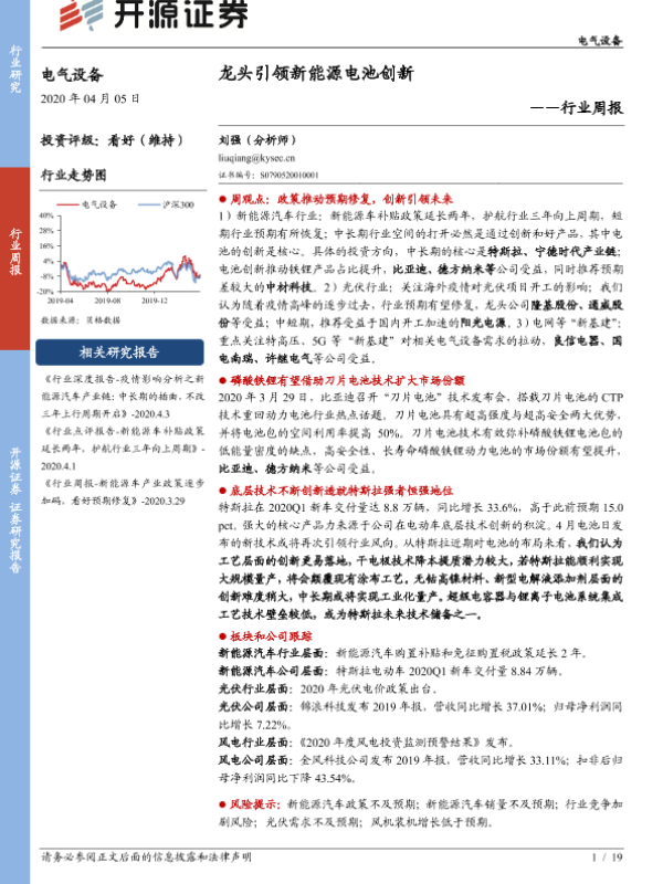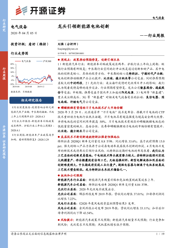 【开源证券】【20200405】电气设备行业周报:龙头引领新能源电池创新-19页