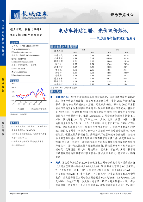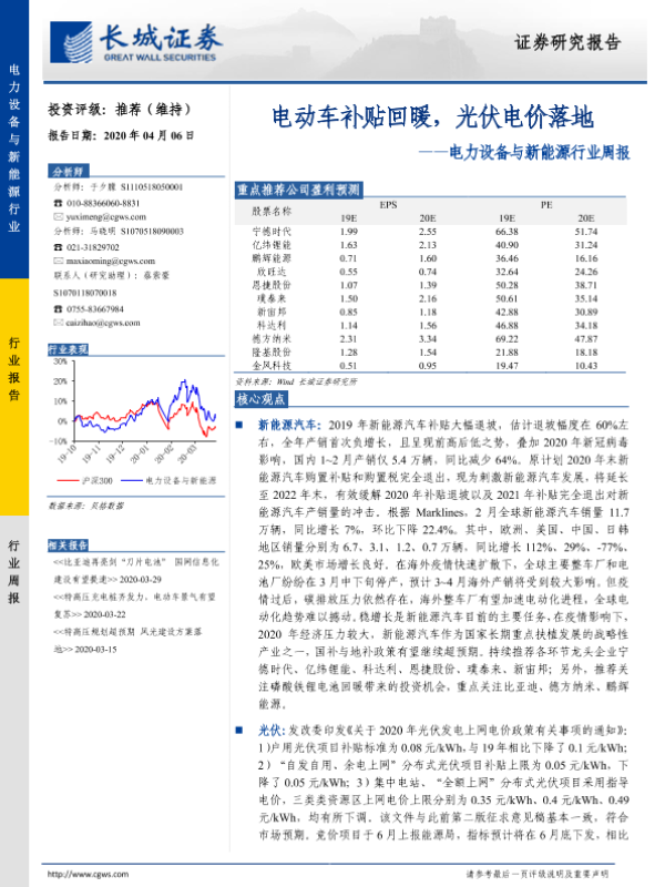 【长城证券】【20200406】20200406-长城证券-电力设备与新能源行业周报:电动车补贴回暖,光伏电价落地-16页