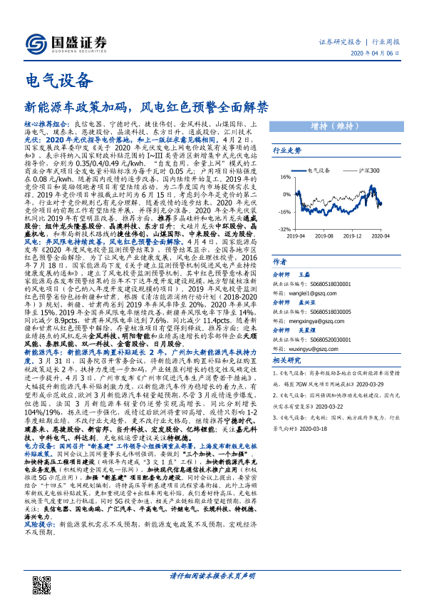 【国盛证券】【20200406】电气设备行业周报:新能源车政策加码,风电红色预警全面解禁-20页
