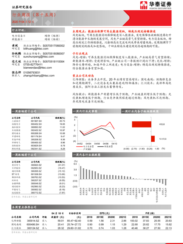 【华泰证券】【20200412】电力设备与新能源行业周报(第十五周)-16页