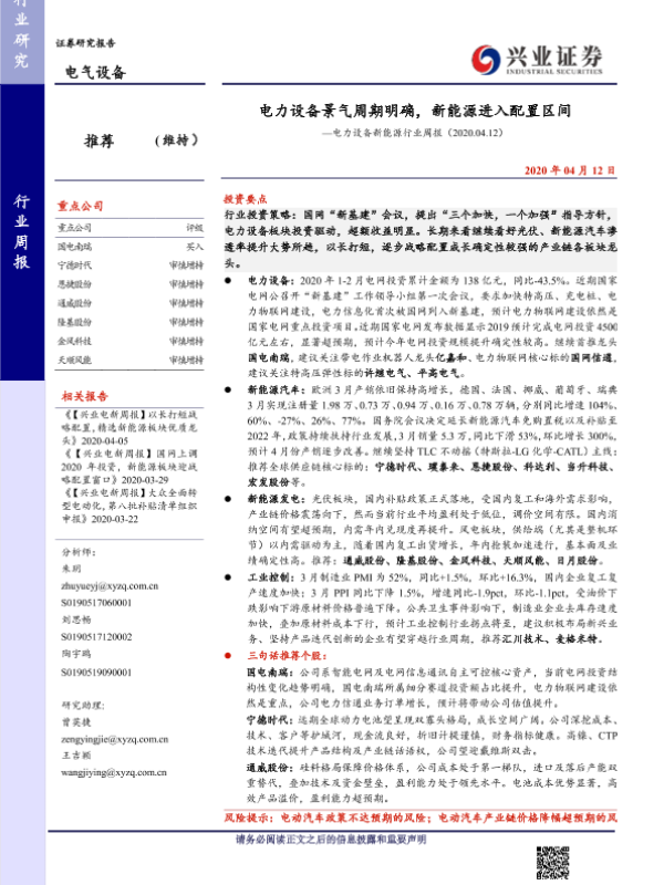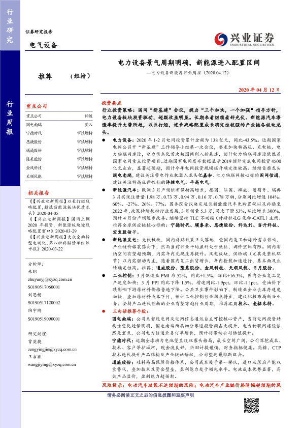 【兴业证券】【20200412】电力设备景气周期明确,新能源进入配置区间—电力设备新能源行业周报(2020.04.12)-30页
