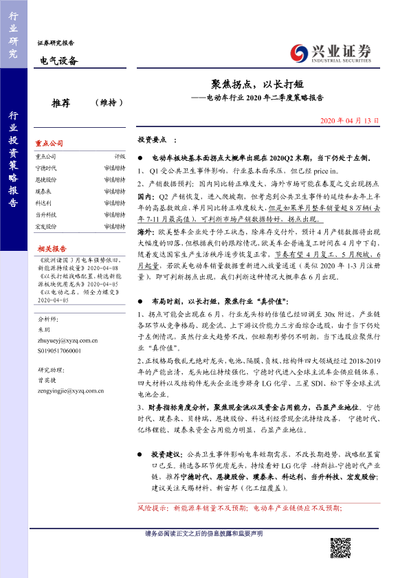 【兴业证券】【20200413】聚焦拐点,以长打短——电动车行业2020年二季度策略报告-37页