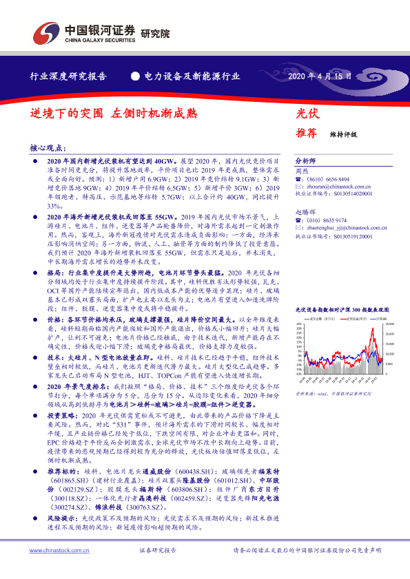 【银河证券】【20200415】电力设备及新能源行业深度研究报告:逆境下的突围 左侧时机渐成熟-40页
