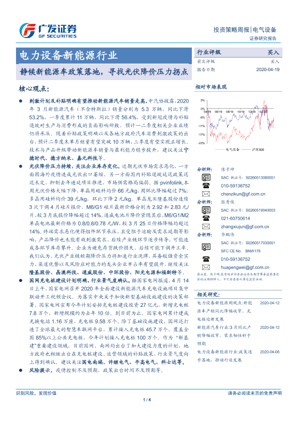 【广发证券】【20200419】电力设备新能源投资策略周报:静候新能源车政策落地,寻找光伏降价压力拐点-4页