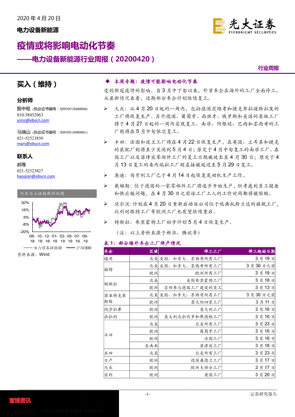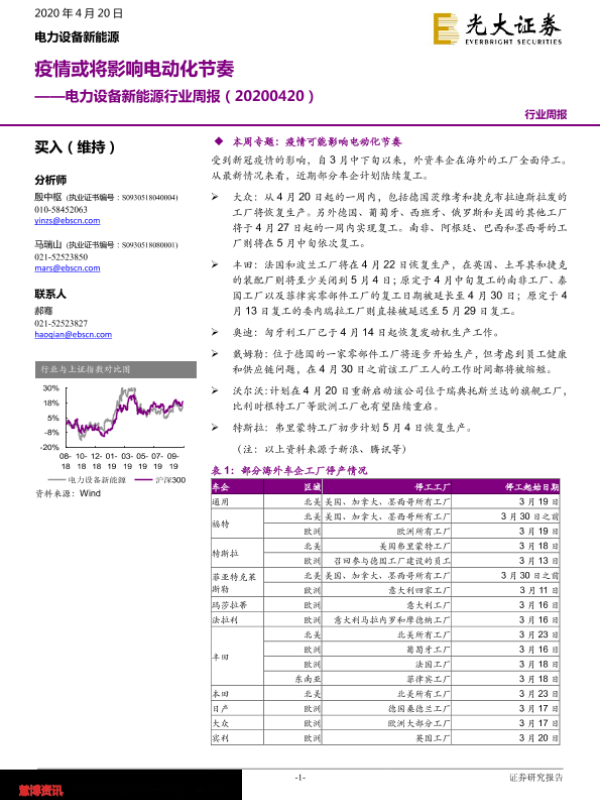 【光大证券】【20200420】电力设备新能源行业周报:疫情或将影响电动化节奏-38页