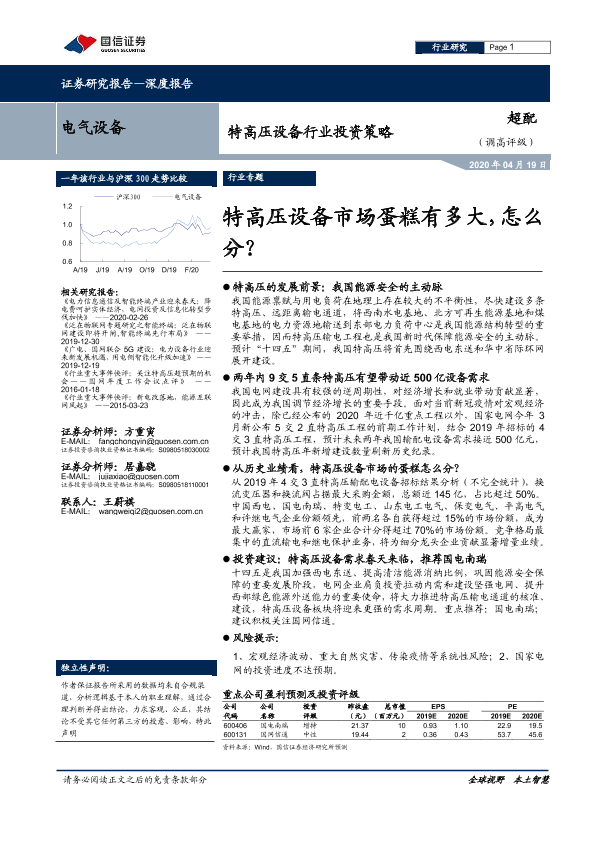 【国信证券】【20200419】特高压设备行业投资策略:特高压设备市场蛋糕有多大,怎么分?-26页