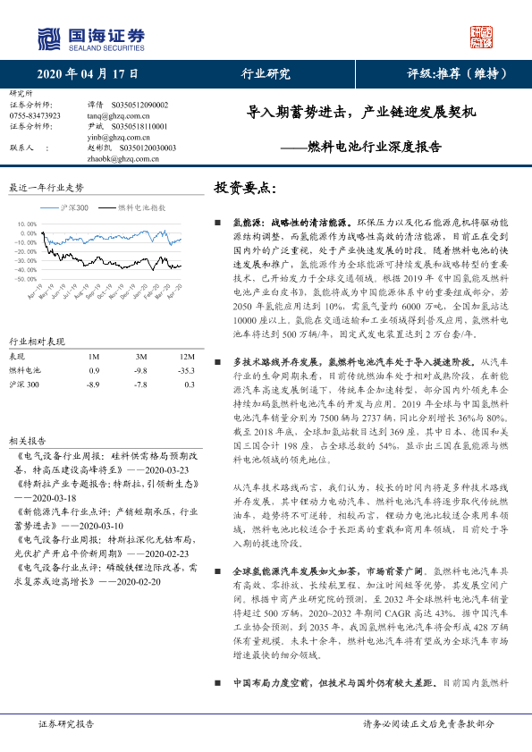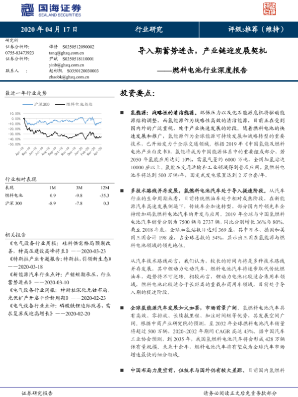 【国海证券】【20200417】燃料电池行业深度报告:导入期蓄势进击,产业链迎发展契机-58页