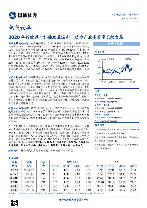【国盛证券】【20200423】2020年新能源车补贴政策温和,助力产业高质量长效发展-10页