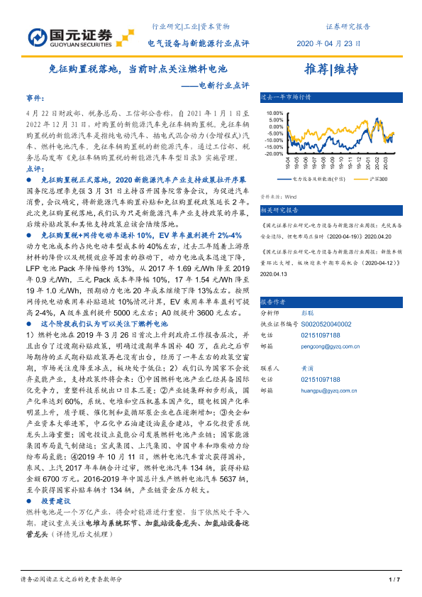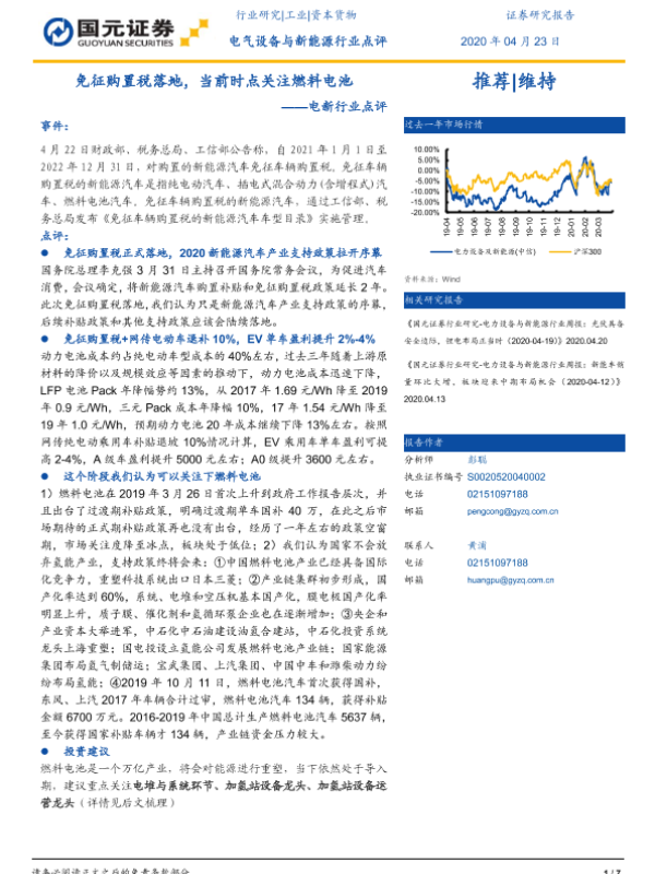 【国元证券】【20200423】电新行业点评:免征购置税落地,当前时点关注燃料电池-7页