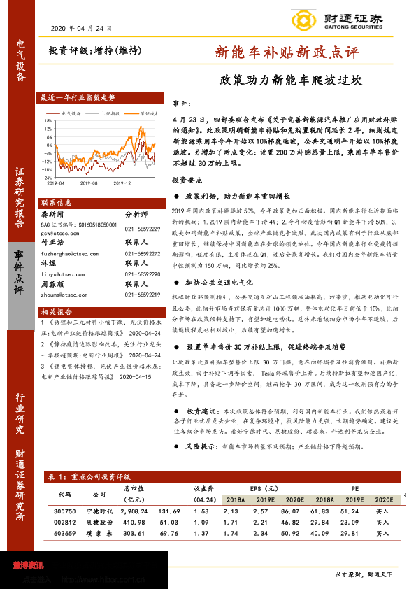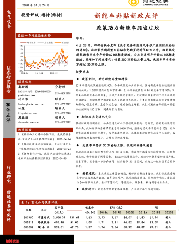 【财通证券】【20200424】新能车补贴新政点评:政策助力新能车爬坡过坎-2页