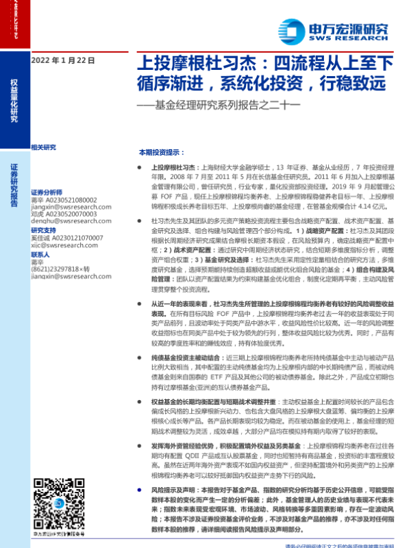 【申万宏源】【20220122】上投摩根杜习杰:四流程从上至下循序渐进,系统化投资,行稳致远-18页