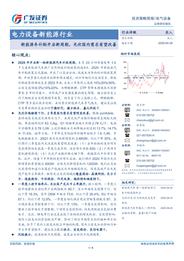 【广发证券】【20200426】电力设备新能源行业:新能源车补贴开启新周期,光伏国内需求有望改善-4页