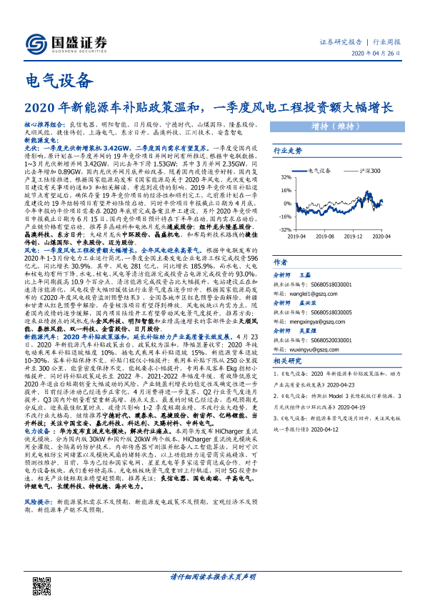 【国盛证券】【20200426】2020年新能源车补贴政策温和,一季度风电工程投资额大幅增长-22页