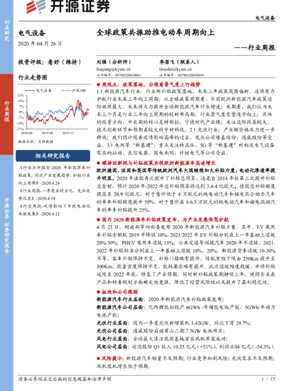 【开源证券】【20200426】电气设备行业周报:全球政策共振助推电动车周期向上-17页