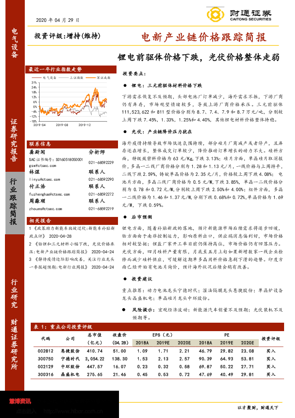 【财通证券】【20200429】电新产业链价格跟踪简报:锂电前驱体价格下跌,光伏价格整体走弱-11页