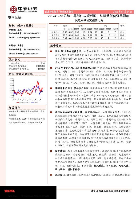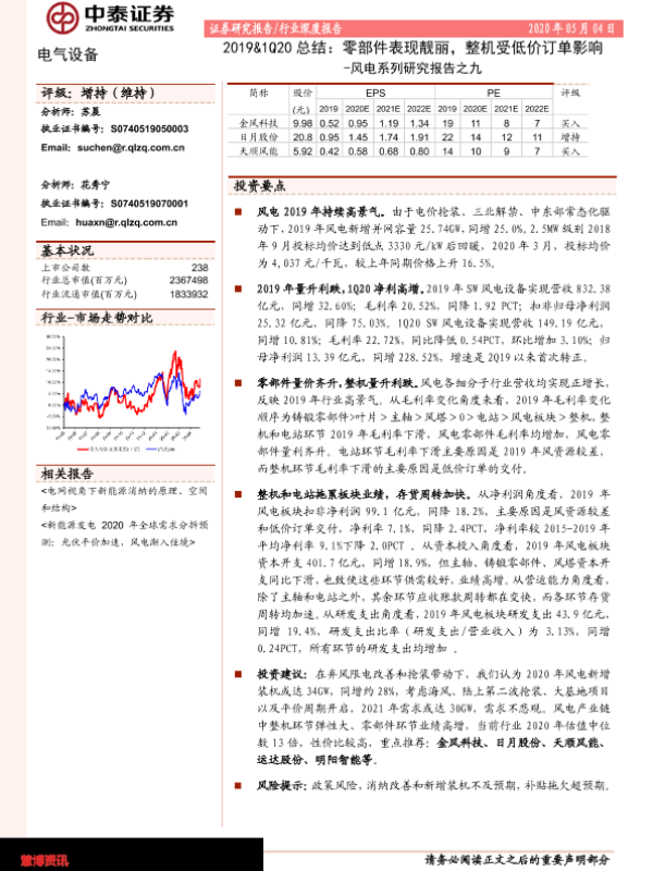 市场分析 投资建议 整机订单 零部件表现 风电行业