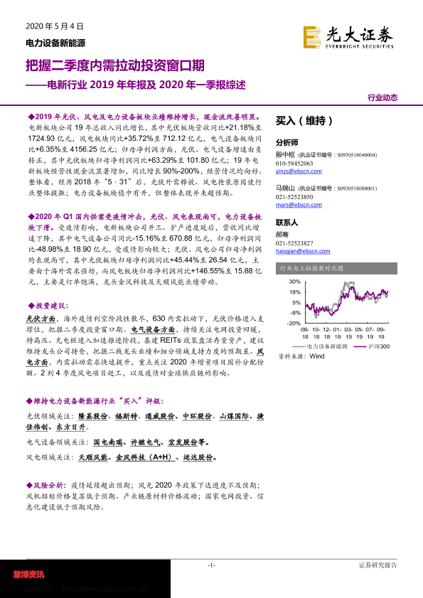 【光大证券】【20200504】电新行业2019年年报及2020年一季报综述:把握二季度内需拉动投资窗口期-20页