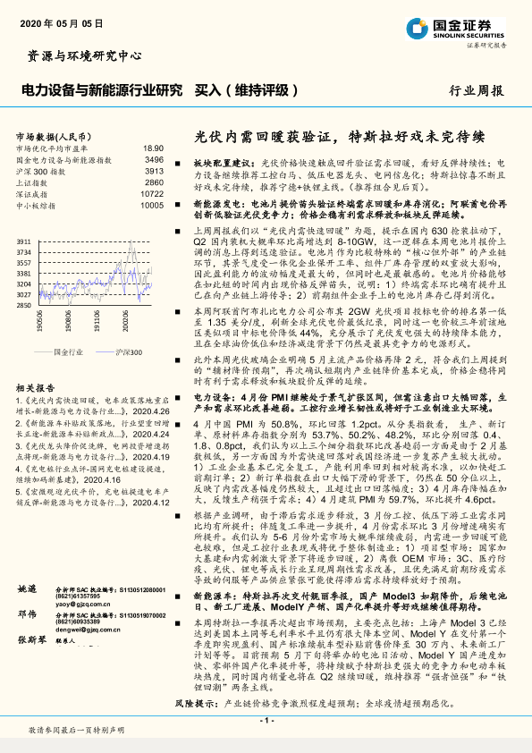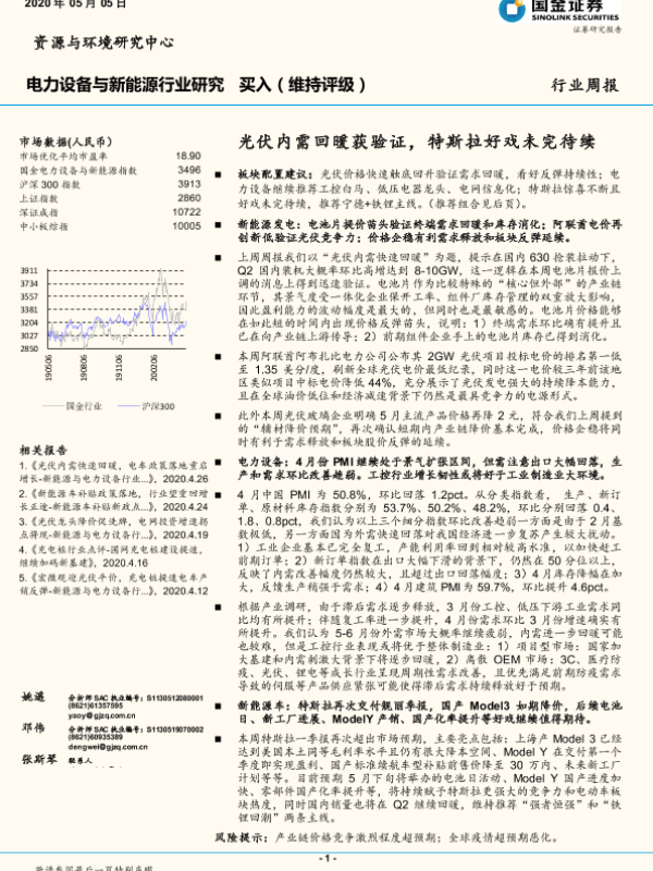 【国金证券】【20200505】电力设备与新能源行业研究:光伏内需回暖获验证,特斯拉好戏未完待续-4页