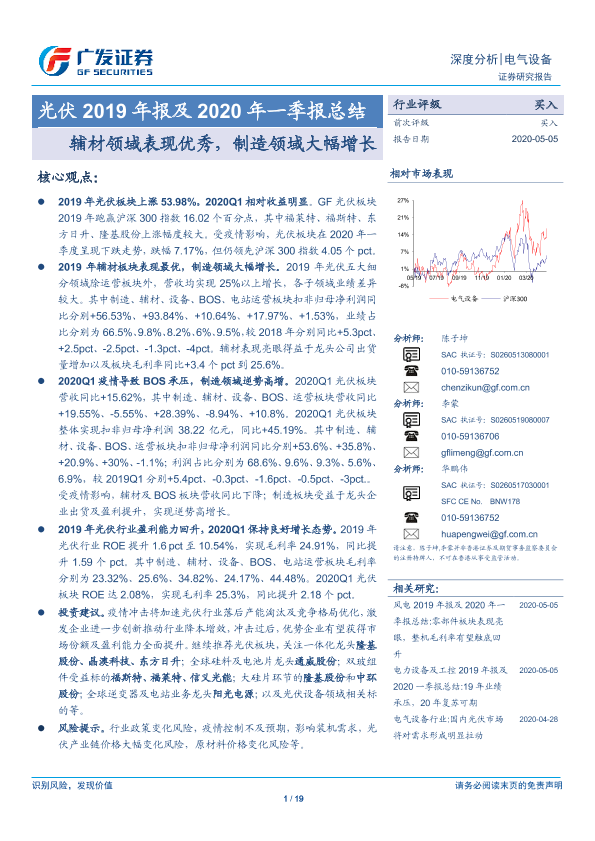 【广发证券】【20200505】光伏2019年报及2020年一季报总结:辅材领域表现优秀,制造领域大幅增长-19页
