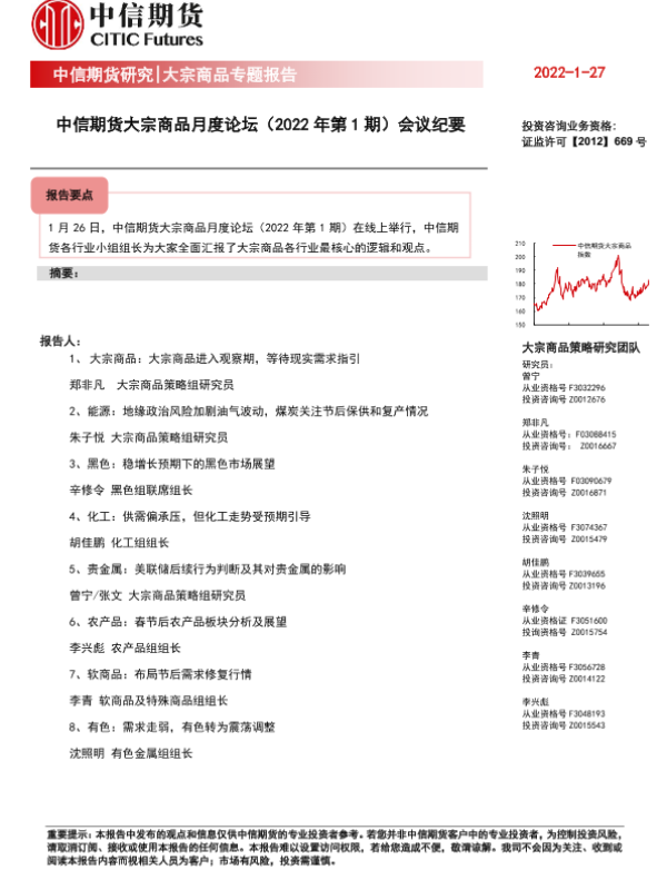 【中信期货】【20220127】大宗商品专题报告:大宗商品月度论坛(2022年第1期)会议纪要-17页