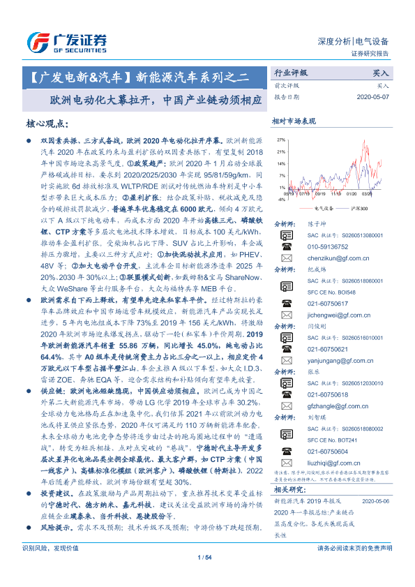 【广发证券】【20200507】【广发电新&汽车】新能源汽车系列之二:欧洲电动化大幕拉开,中国产业链动须相应-54页