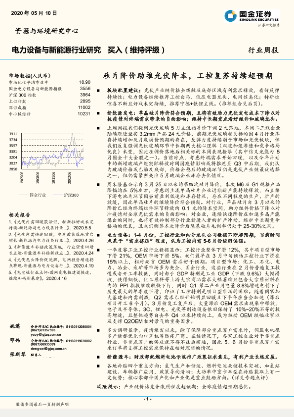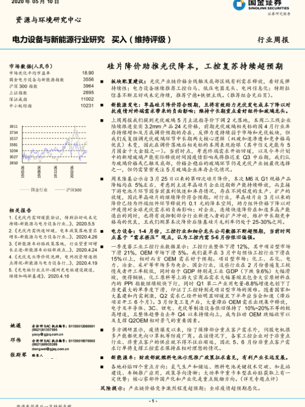 【国金证券】【20200510】电力设备与新能源行业研究:硅片降价助推光伏降本,工控复苏持续超预期-4页